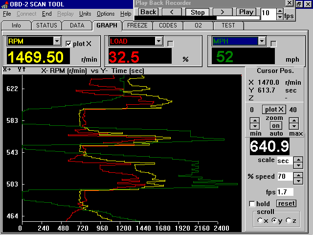 OBD-2 Automotive Scan Tool 32 pen strip chart screen shot
