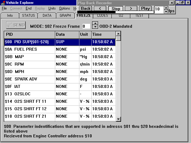OBD-2 Automotive Scan Tool Browser Diagnostic Freeze Frame Screen Shot